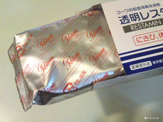 リピートしました。人気ブログランキング最近、ありえないような出来事に遭遇してその件で忙しいです・・・。詳しくは書きませんが生きているとびっくりするようなことがあるもんなんですねぇ・・・。そんなこんなでちょっとお疲れぎみの日々なんですが今日は、今年の夏のお気に入り石鹸↓ 透明レスタミン石鹸をまた買いました。リピートです。2回目です。私はおもに洗顔に使っていて・肌が荒れ気味でも・普通でも・生理前でもとにかくどんな肌状態でもこの石鹸で顔を洗ってると調子がいいうえに洗顔料として使うにはかなり安いのでまた買ってしまいました。コスメ代が節約できていいかんじです。箱に入っていてサイドには使用期限が書いてあります↓ さらに中はナイロンじゃなくてこんな金属っぽい入れ物に入っています↓ まだ使わないので中の石鹸の画像は撮影できませんでしたが透明の使いやすい石鹸です。今年の夏の間はこの石鹸で顔うことにします。秋とか冬も使うかなぁ?肌の調子をみながら考えるとします。とにかく安いんですよね。わたしは最後の4回目の唇大荒れの時にこの石鹸に出会ったんですね。それまでは、洗顔料や手作り石鹸とかでも唇につくと悪化しやすくて顔を洗うものに困っていましたがこの透明レスタミン石鹸だけは唇が悪化せず顔を洗えた唯一の石鹸です。これにしてから回復が順調でした。そででは、また更新したくなったらしますのでたまにのぞいてみて下さい。---この記事で紹介したアイテム---透明レスタミン石鹸(80g)[石けん]↑リンク先のSHOPでレビューを読んでみるのもおすすめです。★いちおう目次のページはこちらにありますが リンク切れなどがある場合があります。★はじめから読む場合はこちらへ★よかったらクリックで1票お願いします。 2013年 08月 21日| ∟洗顔・石鹸など|comment(-)